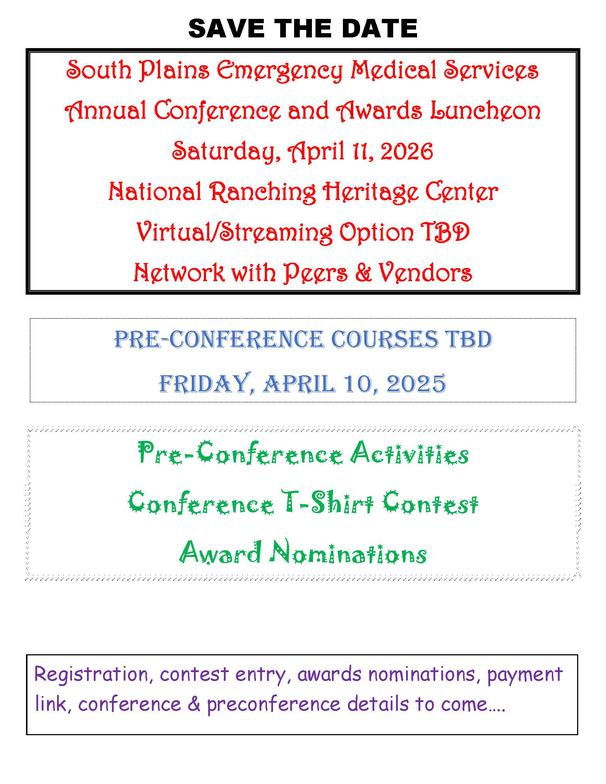 Submit any information that you would like posted on this page to southplainsems@gmail.com